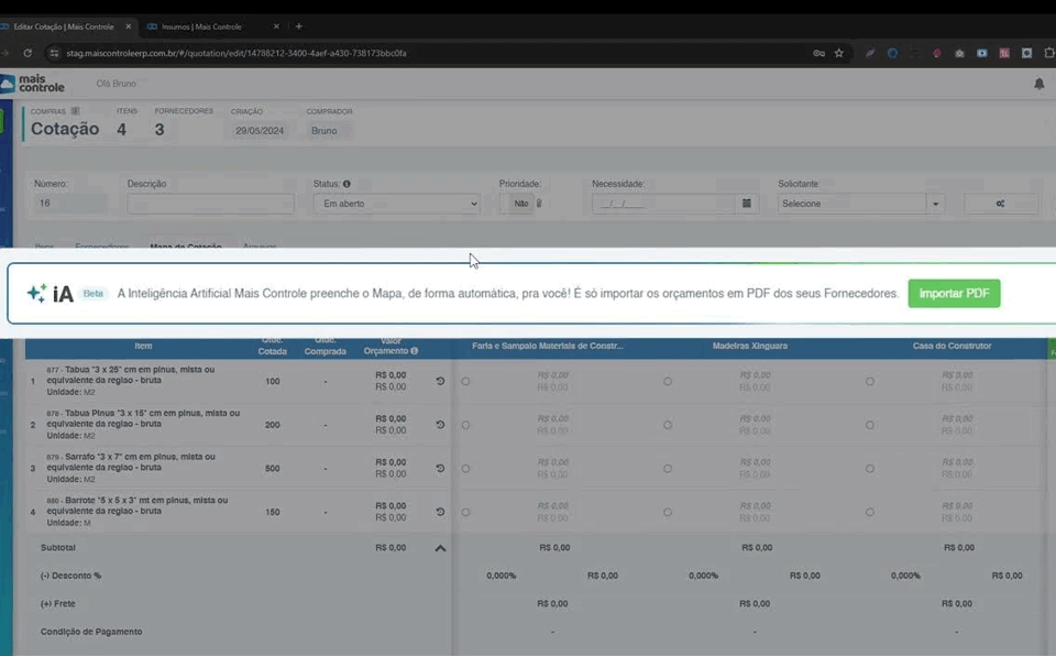 Saiba maisEnvie pedidos para fornecedores pelo WhatsApp, importe preços automaticamente com IA e compare tudo lado a lado para garantir economia e transparência.
