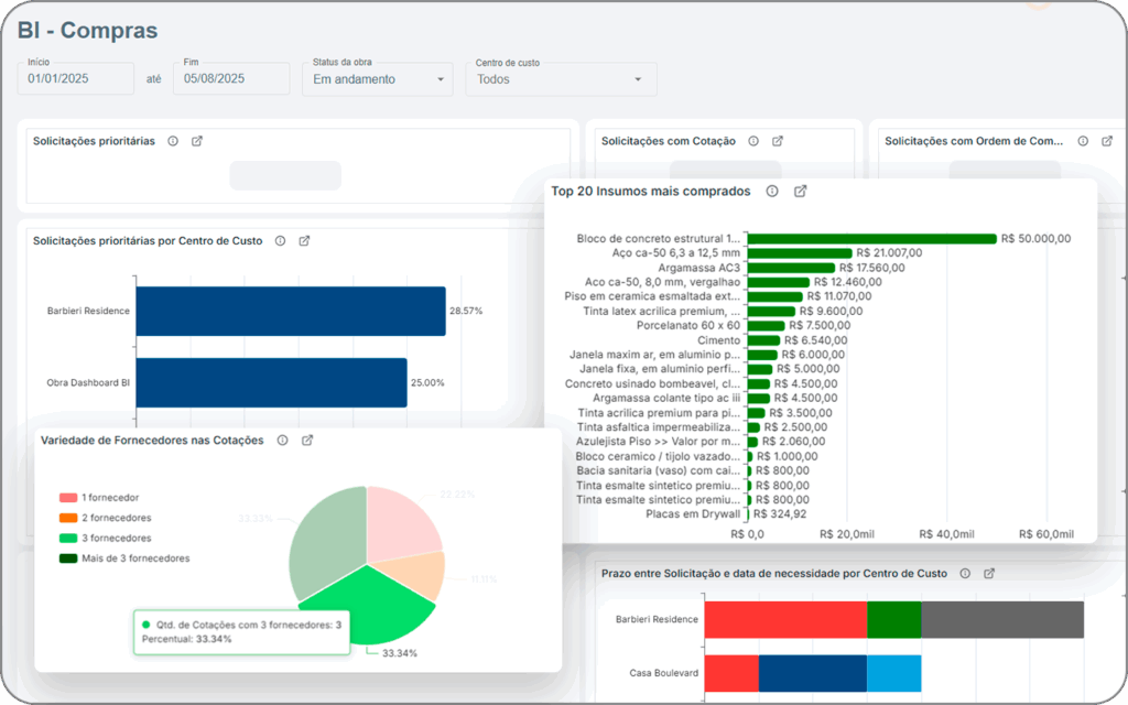 Use dashboards visuais para apresentar esses KPIs aos gestores, permitindo uma análise rápida do desempenho da obra e a identificação de tendências que exigem ação imediata.