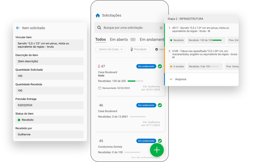 As compras se tornaram planejadas: solicitações abertas pelo app, cotações organizadas e estoque controlado.